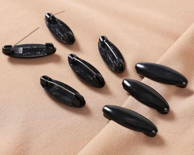 The Safety Hijab Pins are made of strong acrylic, with an easy-to-open and close but secure metal safety pin. The pins do not snag clothing like regular safety pins, because the metal loop is covered with plastic. Perfect for shawls, scarves, or any piece of clothing.